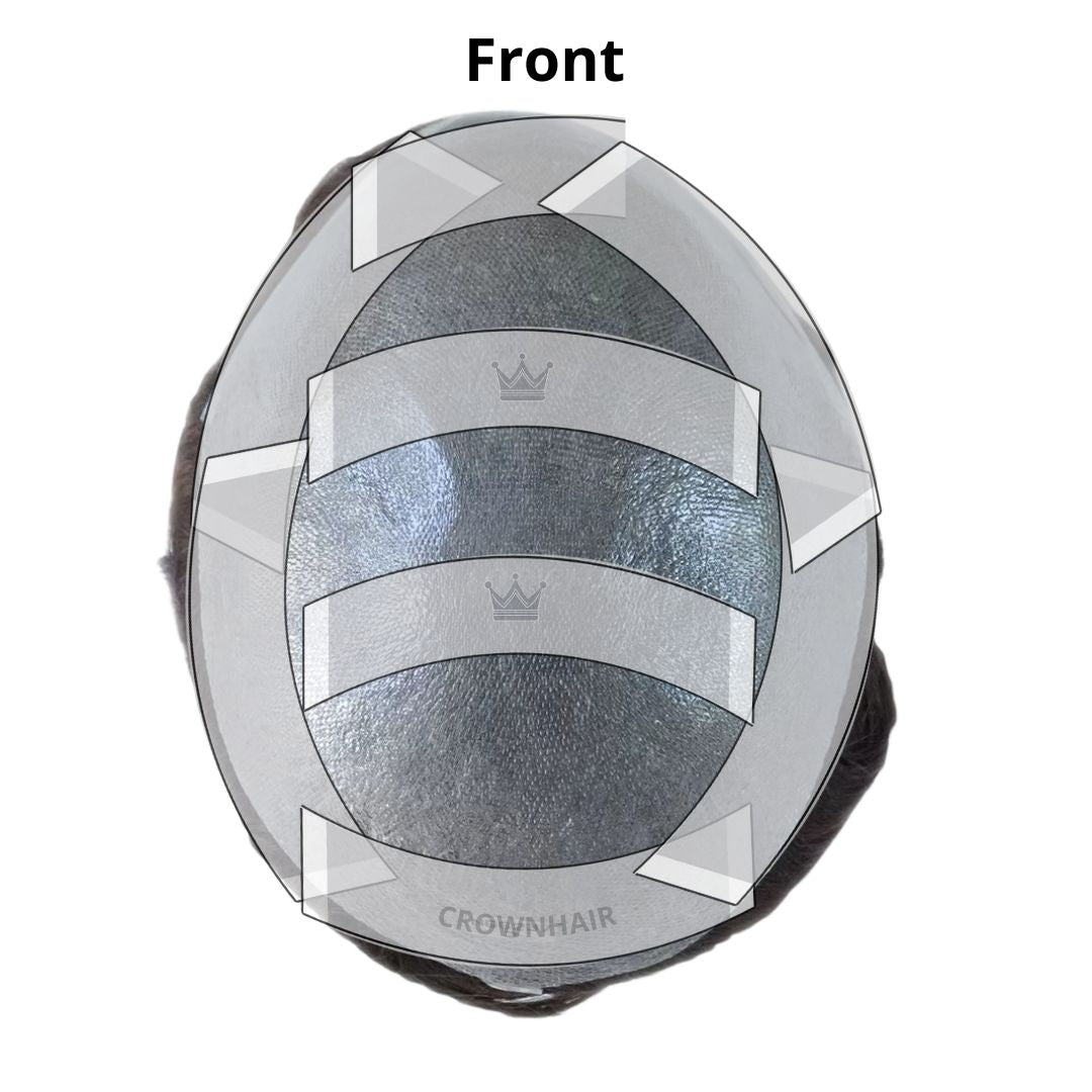 I nastri biadesivi vengono applicati direttamente sulla base della protesi, seguendo una disposizione precisa.