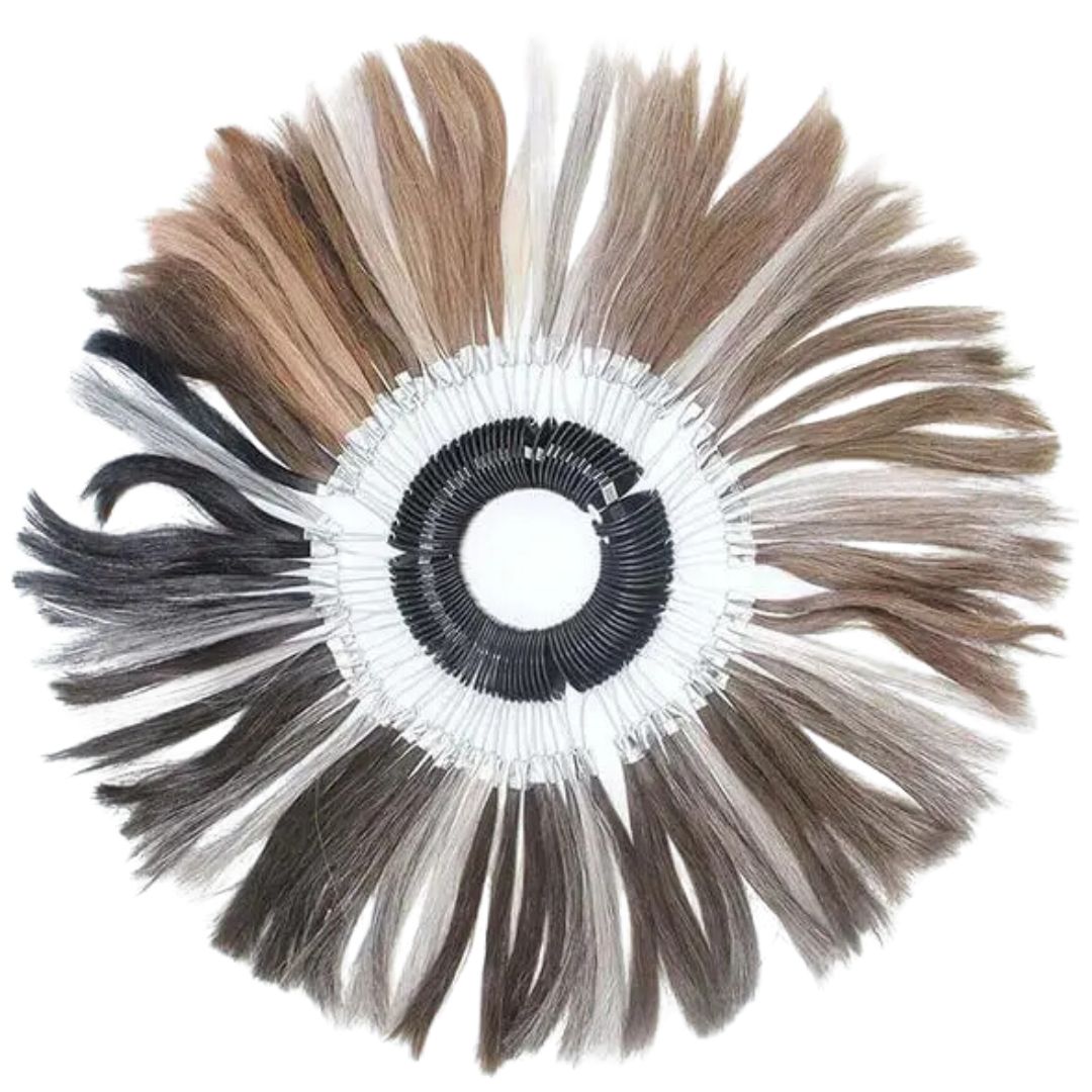 Se non sei sicuro del codice colore dei tuoi capelli o trovi difficile descriverlo, l'anello con tutti i colori disponibili CrownHair è la soluzione ideale. Con questo strumento pratico e intuitivo, potrai identificare facilmente il codice del colore perfetto per il tuo impianto capillare.