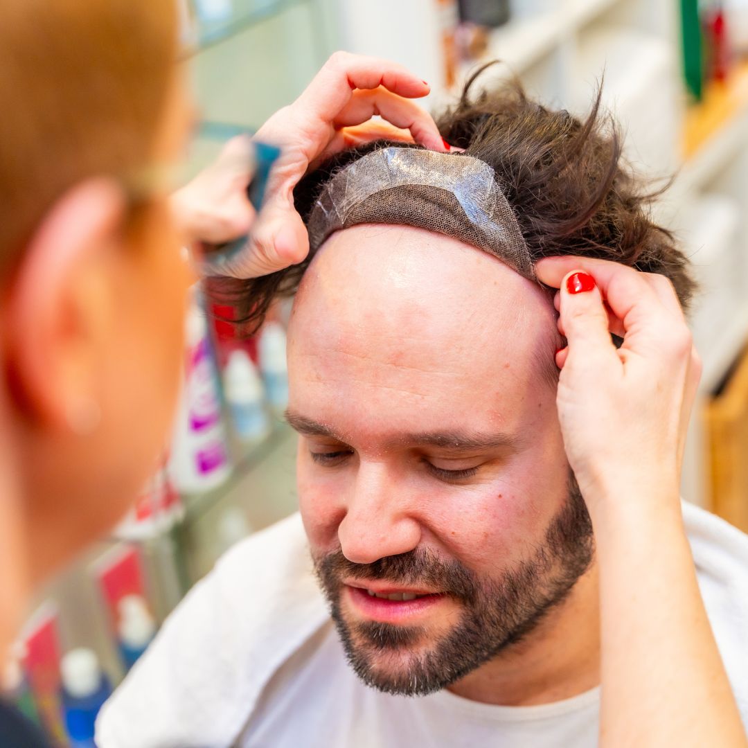 Si! non possiamo creare un acconciatura standard, ogni persona ha la sua acconciatura. Ti invitiamo a recarti da un barbiere o parrucchiere di fiducia per creare il tuo taglio su misura, potrai indossare la protesi e andare proprio come se fossero i tuoi capelli.